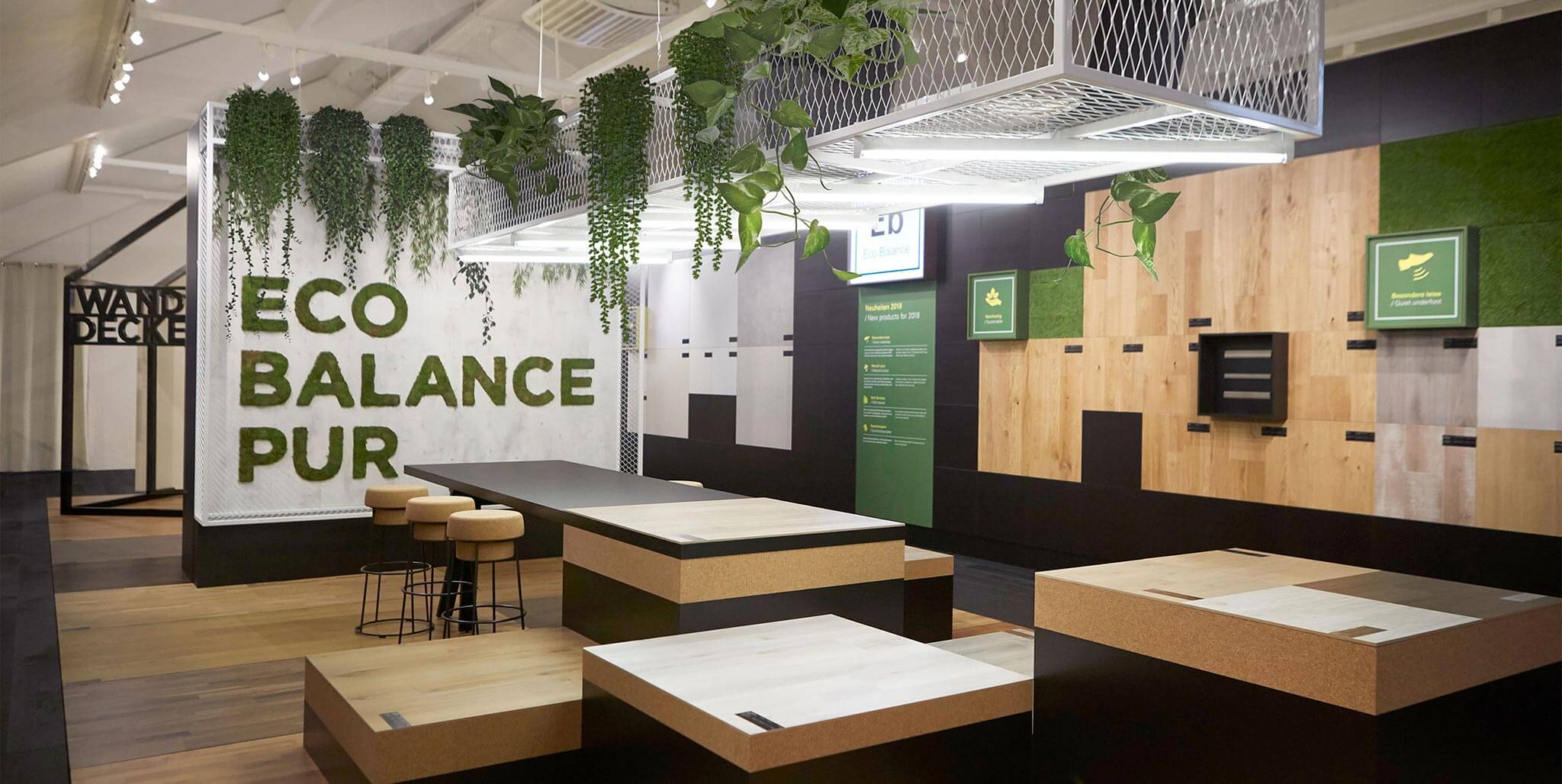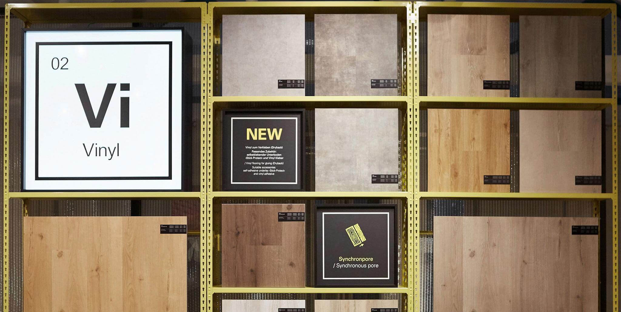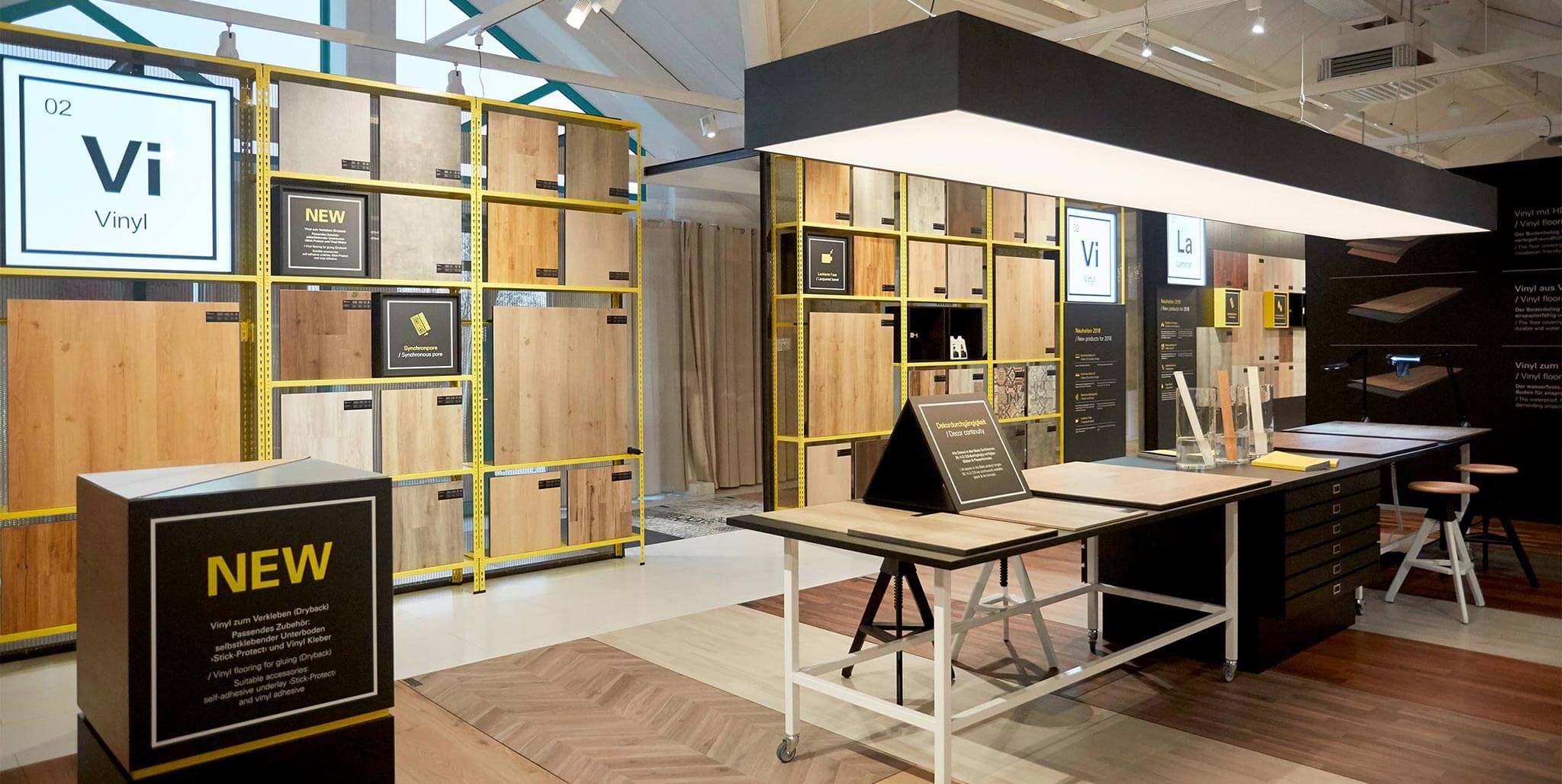 Das Ausstellungskonzept stellt die Produkteigenschaften in den Mittelpunkt. Die Produktvorteile der Parador-Böden werden durch Wassertests, Vergrößerung der Oberflächenstrukturen und haptische Vergleiche anschaulich gezeigt. So wird beispielsweise die Wasserfestigkeit einer neuen Leiste von Parador demonstriert. Durch einen Fühltest können die Besucher die besondere Haptik und Struktur einzelner Oberflächen spüren und sich von der Qualität überzeugen.