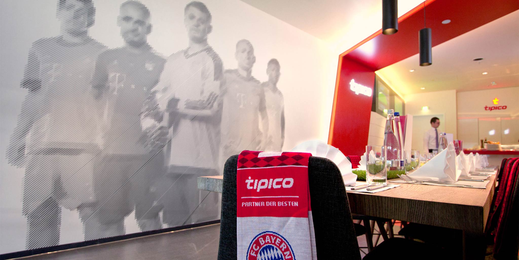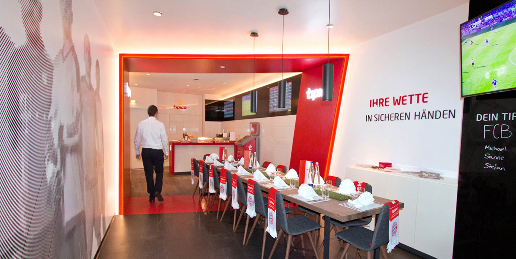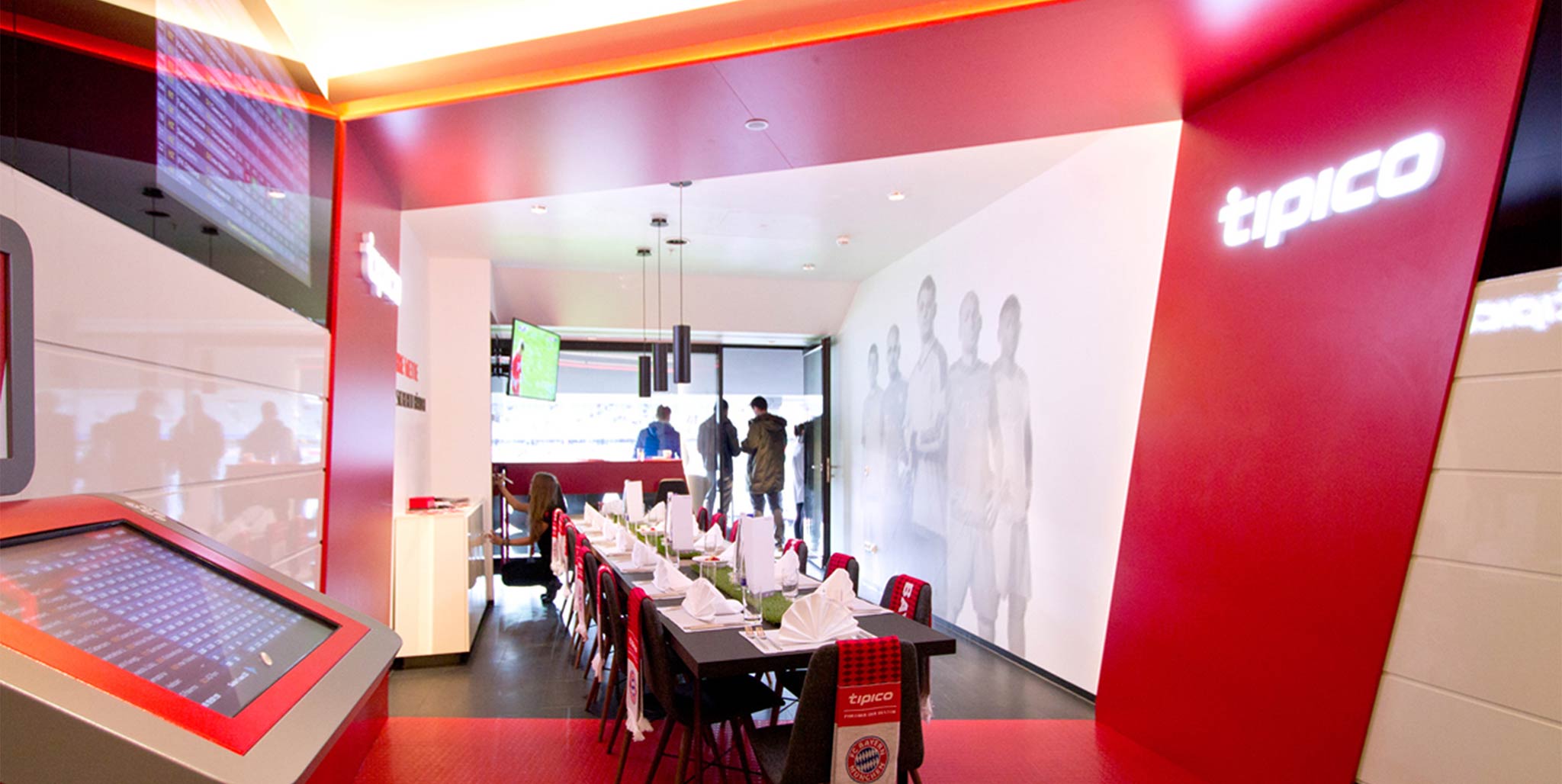 In der Allianz-Arena betreibt Tipico als Partner des FC Bayern München eine markentypische VIP-Lounge. Eine rote Diagonale teilt den Raum in Wettshop und Lounge. Wetten können hier vor und während des Spiels an den Automaten platziert werden.